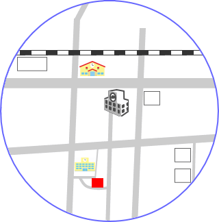 中学校の右下辺りに物件があります。